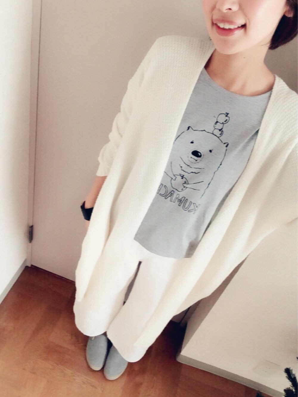 ゆるゆるゆる。 グレーのくまさんTはなんと200円ー(笑) ゆるゆるでも白とグレーでまとめると大人っぽく決まる気がする