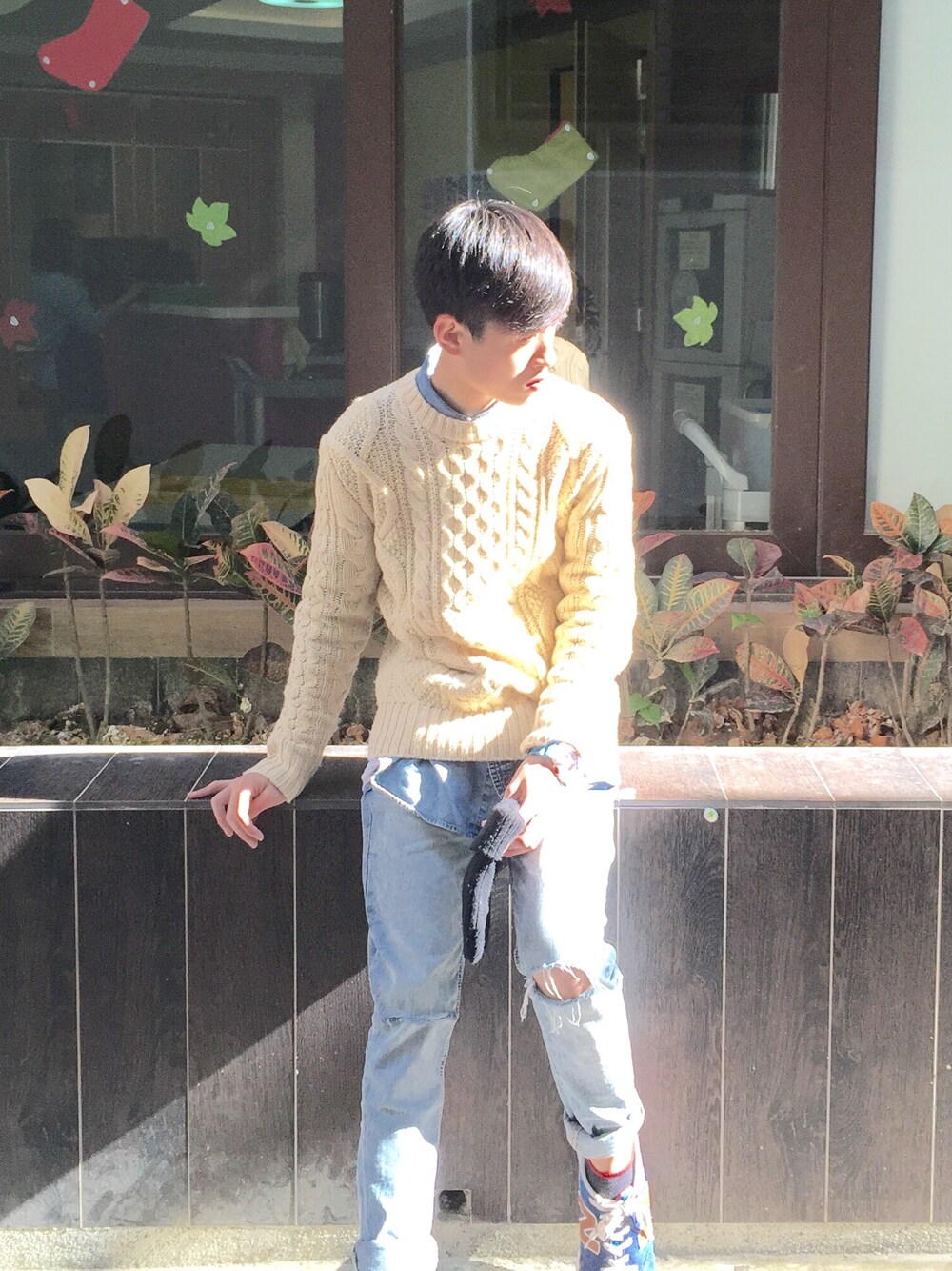 clareson yuのニット/セーター「OATMEAL COLORADO CABLE KNIT JUMPER/オートミール コロラド ケーブルニット ジャンパー」を使ったコーディネート