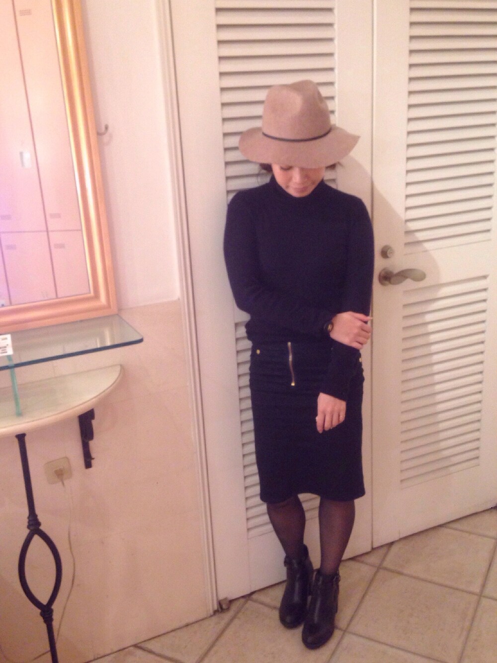 ネイビーコーデ☆ 差し色のハットはリボンがネイビーで統一感^ - ^☆ どんなにキツくたって、スカートやパンツは一番小さいsizeを買うのがスタイルキープの秘訣。 ….と言ってみたけど、12月は誕生日にXmas、忘年会で外食続き…^^; ウエスト苦しかったぁ。。。