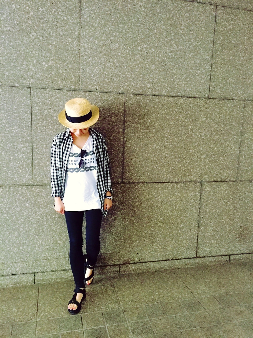 モノトーン☆ Tシャツは昨日着てたのと柄違い☆ 人の顔がはいった黒いのも持ってます^ ^ VIA BUSで買ったT.O.Aというイギリスのブランドなんだけど、型がかなりお気に入りで大切に着て3年目突入‼︎