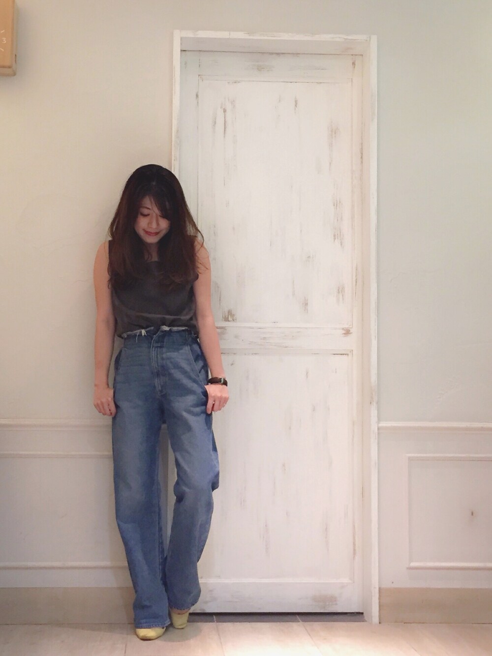 切りっぱなしが可愛いハイウエストパンツ❤︎ いろんなトップスをインして履きたいな☺︎