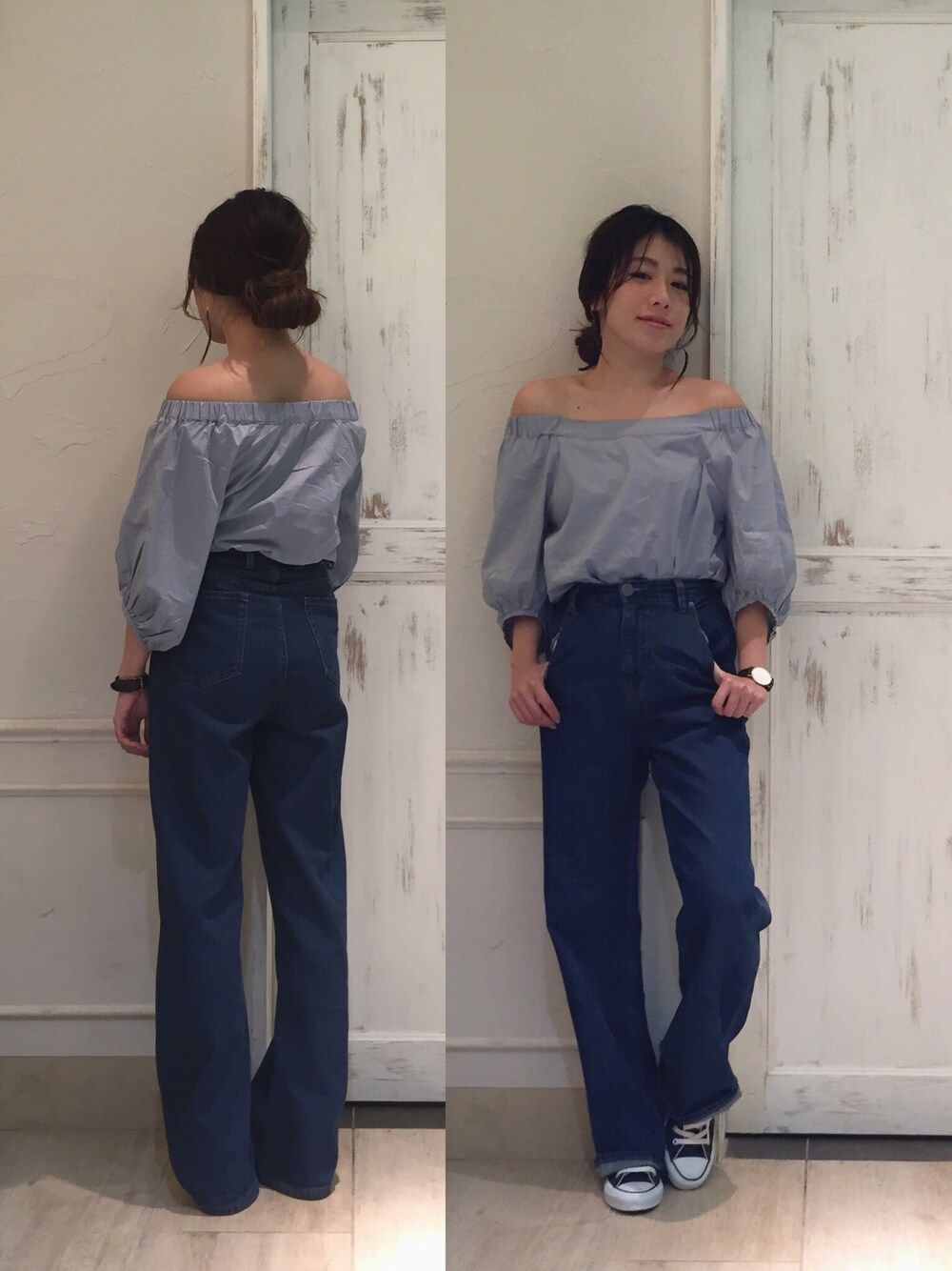 スニーカー外しのオフショル♪ ハイウエスト&2センチのインソールで脚長に😂