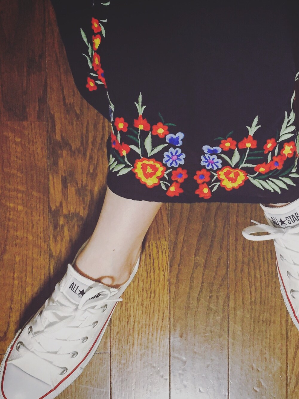 5足目のコンバースは初めてのローカット! 刺繍ワンピと合わせたら好きな組み合わせ♡