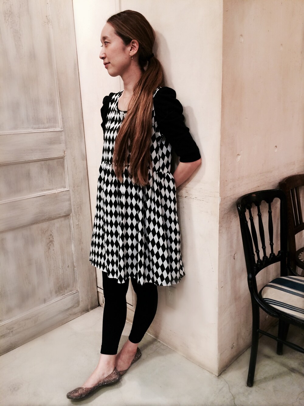 柄ワンピースなので他はシンプルにしてみました☺︎