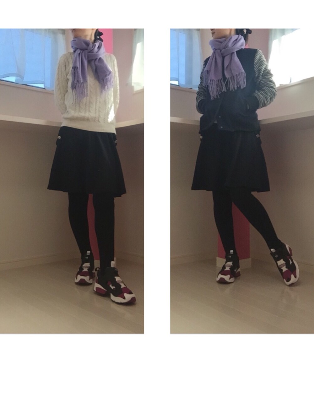 2015.1.23 ニット H&M スカート GU サスペンダー ダイソー シューズ reebok スタジャン misty woman マフラー アプワイザーリッシェ