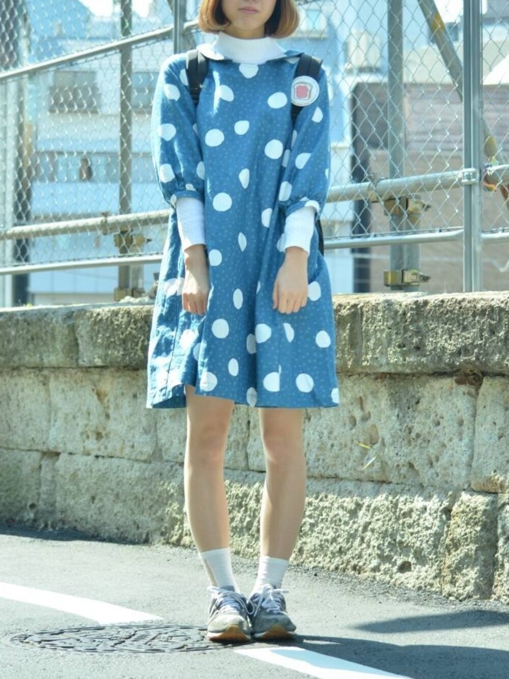 ハイネックとみずたまワンピースで春らしく