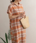 サカタのワンピース「インドコットンリネンチェックワンピース」を使ったコーディネート