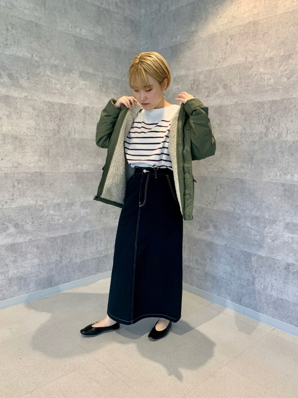 サカタのTシャツ/カットソー「パネルボーダーボートネックカットソー」を使ったコーディネート