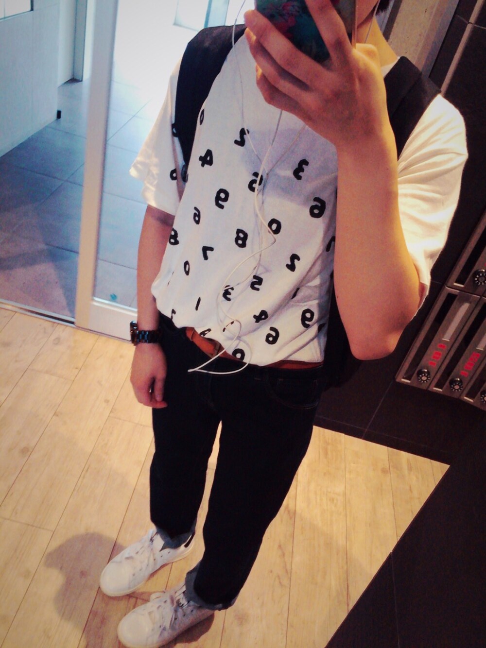 SOU•SOU Tシャツ 選べなくて2色買いして 今日はホワイトのほう(^ν^) ブラックもホワイトもすきです〜〜 久しぶりにこんな格好しました! ニット帽かぶりたいところだけど暑いので断念 買い物いってきます**