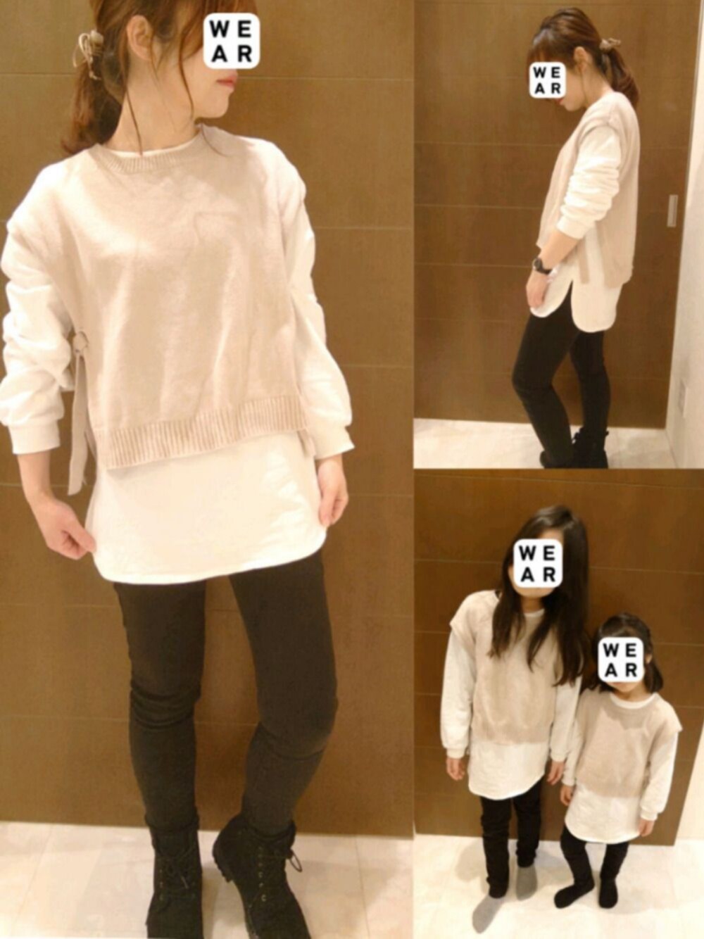 親子コーデ♡ 去年12月に買った GLOBAL WORKのニットベスト×ロンTのセット。 大人顔負けのキッズアイテム(⁎˃ᴗ˂⁎) ✢私➡160cm ✢長女➡140cm ✢次女➡110cm ボトムは全員、 UNIQLOのレギンスパンツ。 子供たちがサイズアウトしちゃう前に たくさん着るぞᐠ( ᐢ ᵕ ᐢ )ᐟ