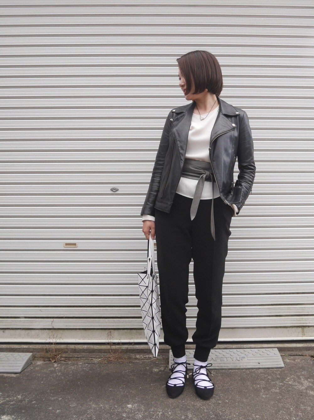 いつものモノトーンコーデ☺︎ サッシュベルトでウエストぎゅーん‼︎