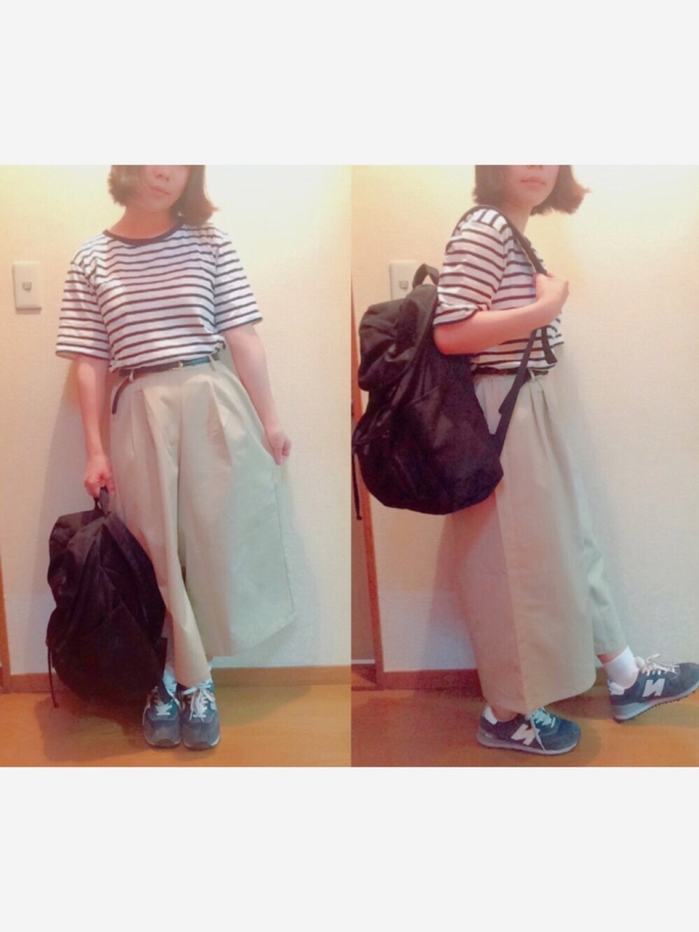 初投稿です。 写真の写りがいまいちで申し訳ないです😥 チノパンを探していたらセール価格で1900円にて手に入れました。 夏っぽいボーダーを合わせて爽やかに仕上げました。