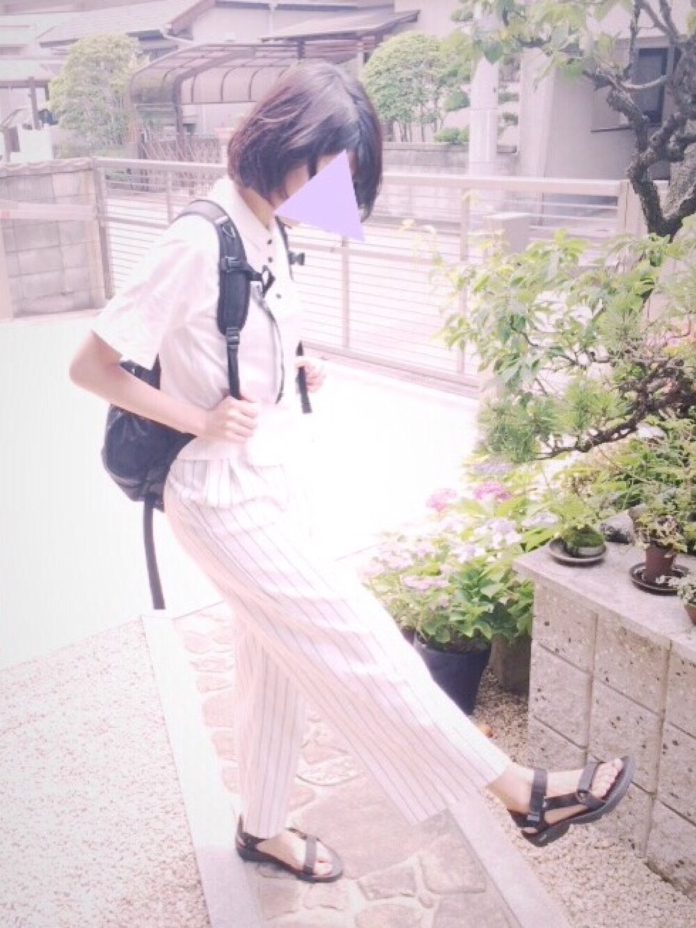 白ポロシャツとスポサンの組み合わせでスポーティーに☆☆! この組み合わせ気に入ってます(*^_^*)