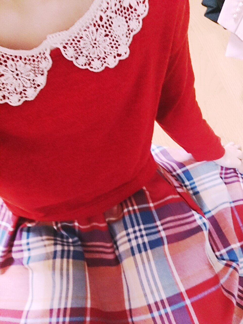 赤を使って可愛く◎ 襟を出してちょこっと アレンジしてみました(´。・v・。`)