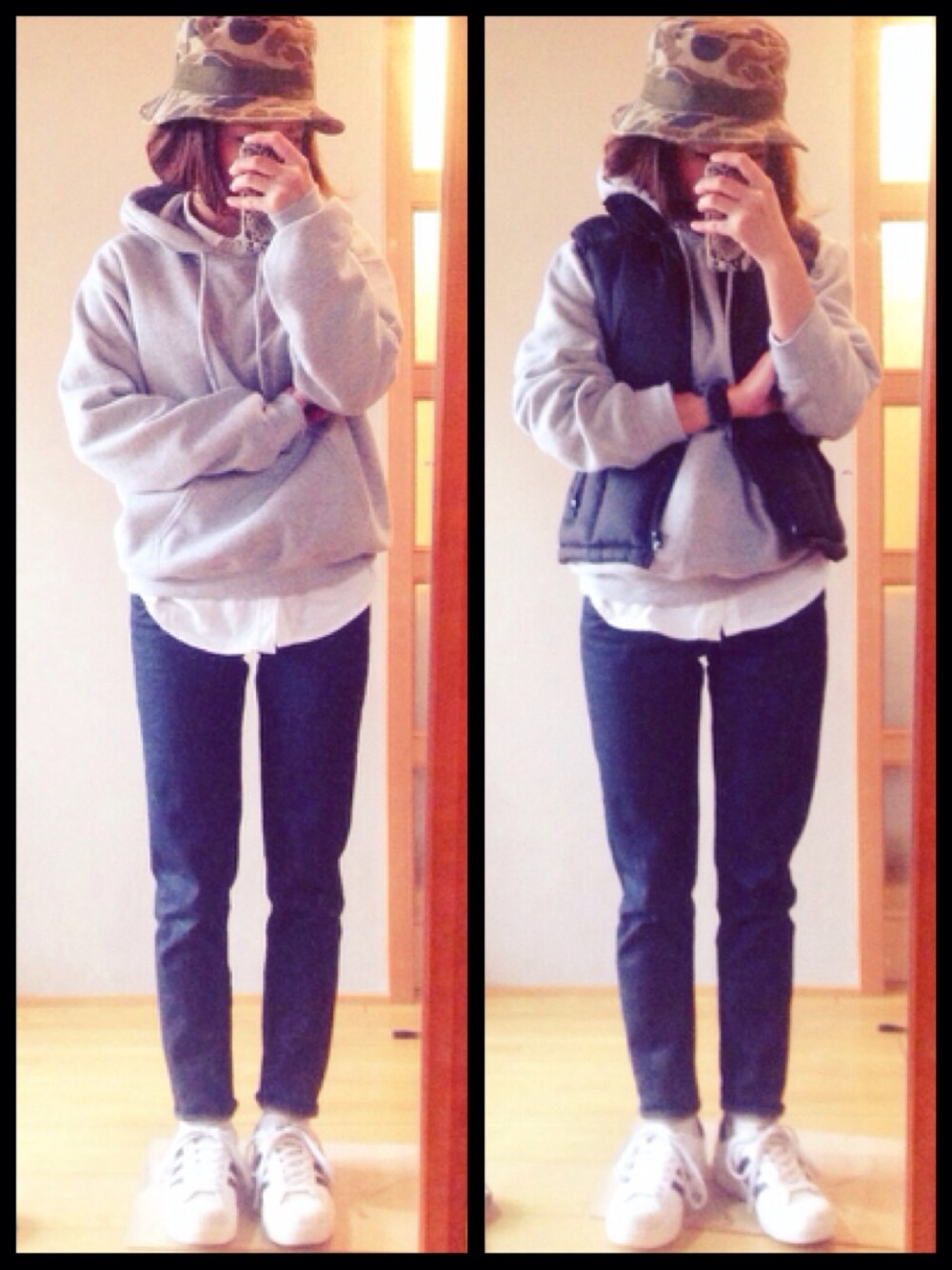 ふつーーー!(笑) 結果この組み合わせか(笑) しゃつ*browny ぱーかー*? あうたー*? ぱんつ*moussy くつ*adidas 荷物多いのでまたリュック! かもふらであわせました(^∇^)