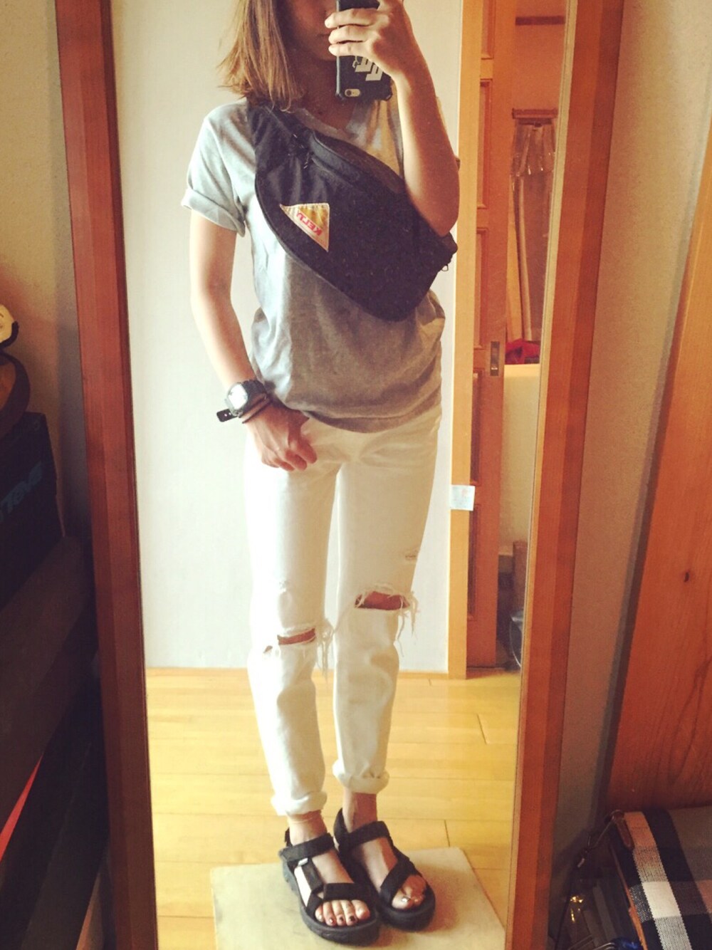 かばんかえるのが めんどくさいのだけれど… 両手あくし楽ちん いつも似たよーな Tシャツにデニムばっか! のっかり☆