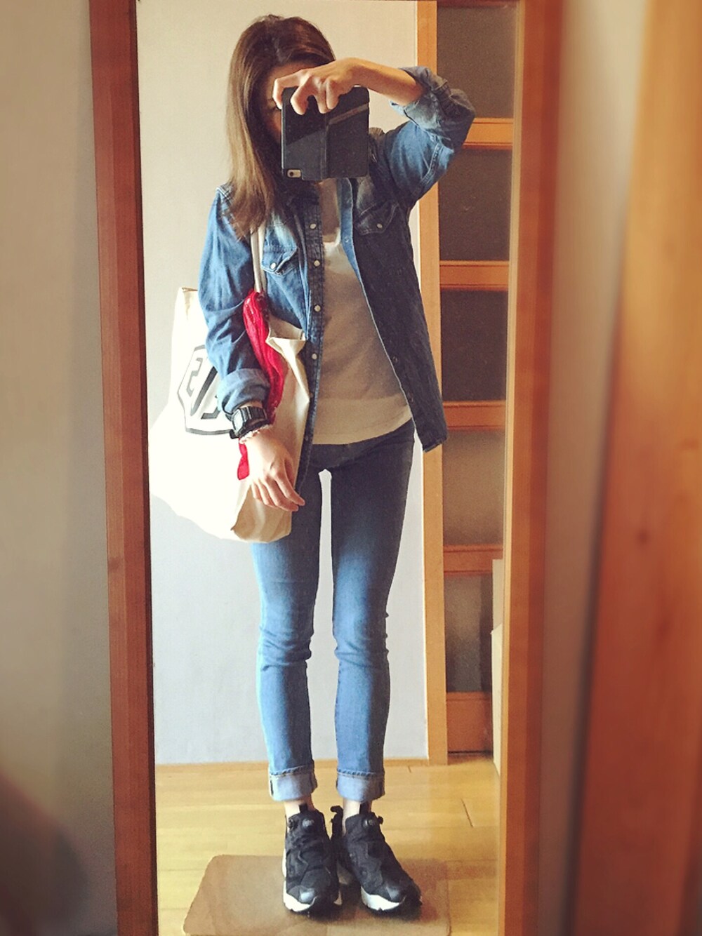 パツパツデニムはいた時にわ このスニーカーしかはけない… ぽんぷ様々。 シャツ1990円 トップス1990円 パンツ750円 素晴らしく安い(笑)