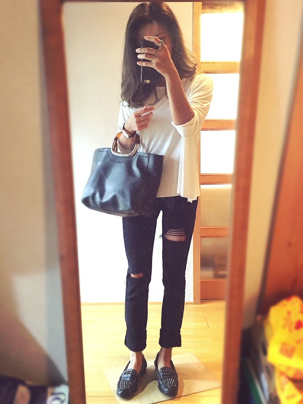 このパンツカタチが嫌いだけど〜 びりびりだからすき〜 足が長かったらいいのに…😂