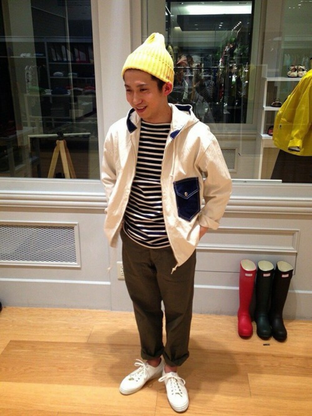 ORCIVALのコットンキャンバスパーカーを定番のマリンボーダーで合わせました。 気温が高くなるとショートパンツとのコーディネートもお勧めです。
