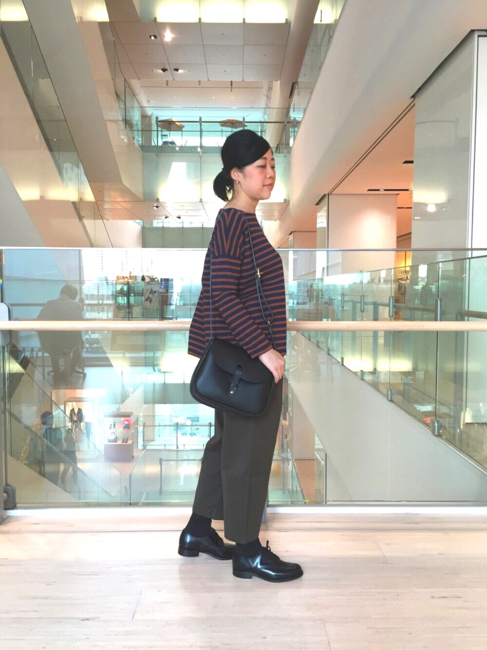 女性らしいドロップショルダーのボーダーはパンツスタイルにおすすめです。首周りが少し広めなのでボートネックが苦手な方でも着やすい1枚です。