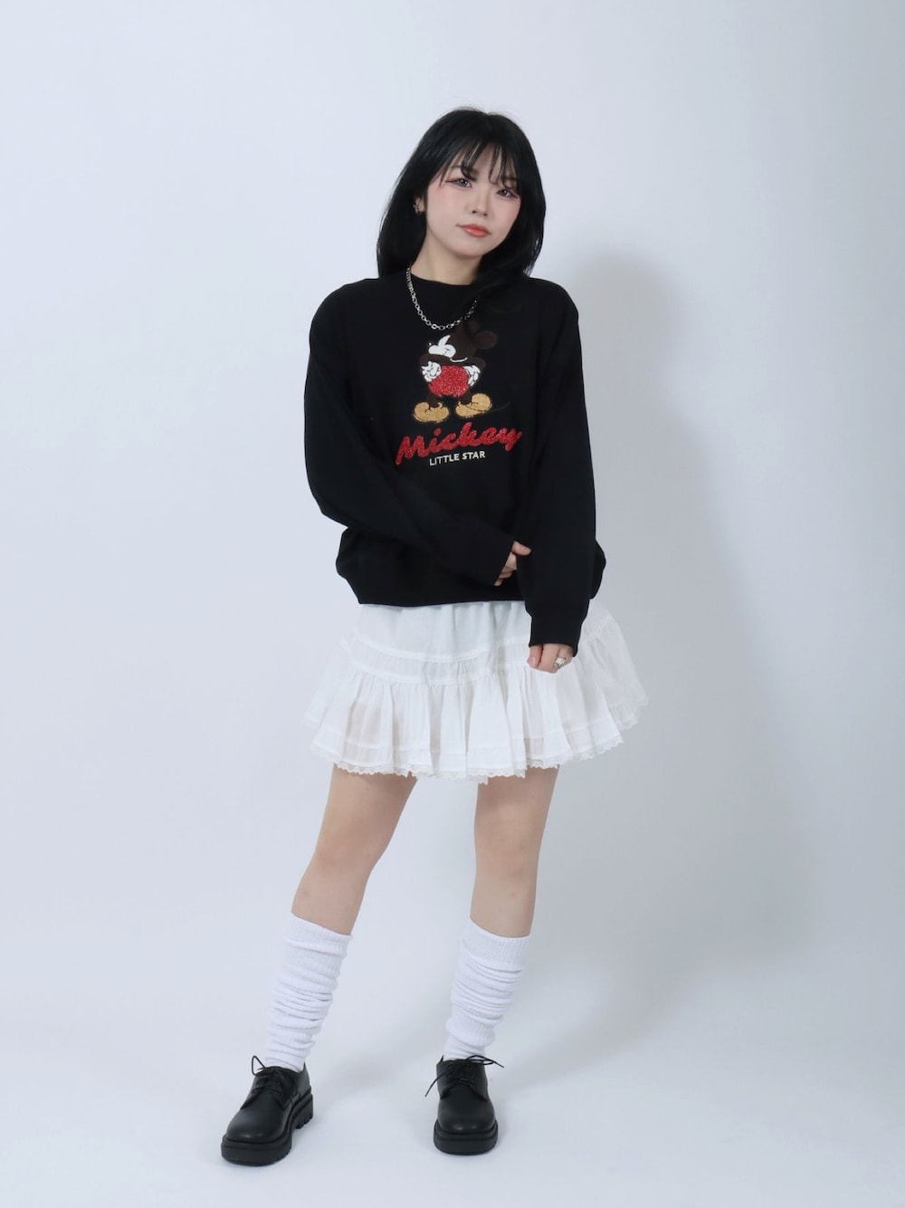 Salong hameu【Official】(Salong hameu)のスウェット「Disney(ディズニー)キャラクターサガラ刺繍スウェットトレーナー/ミッキーマウス/トイ・ストーリー エイリアン」を使ったコーディネート