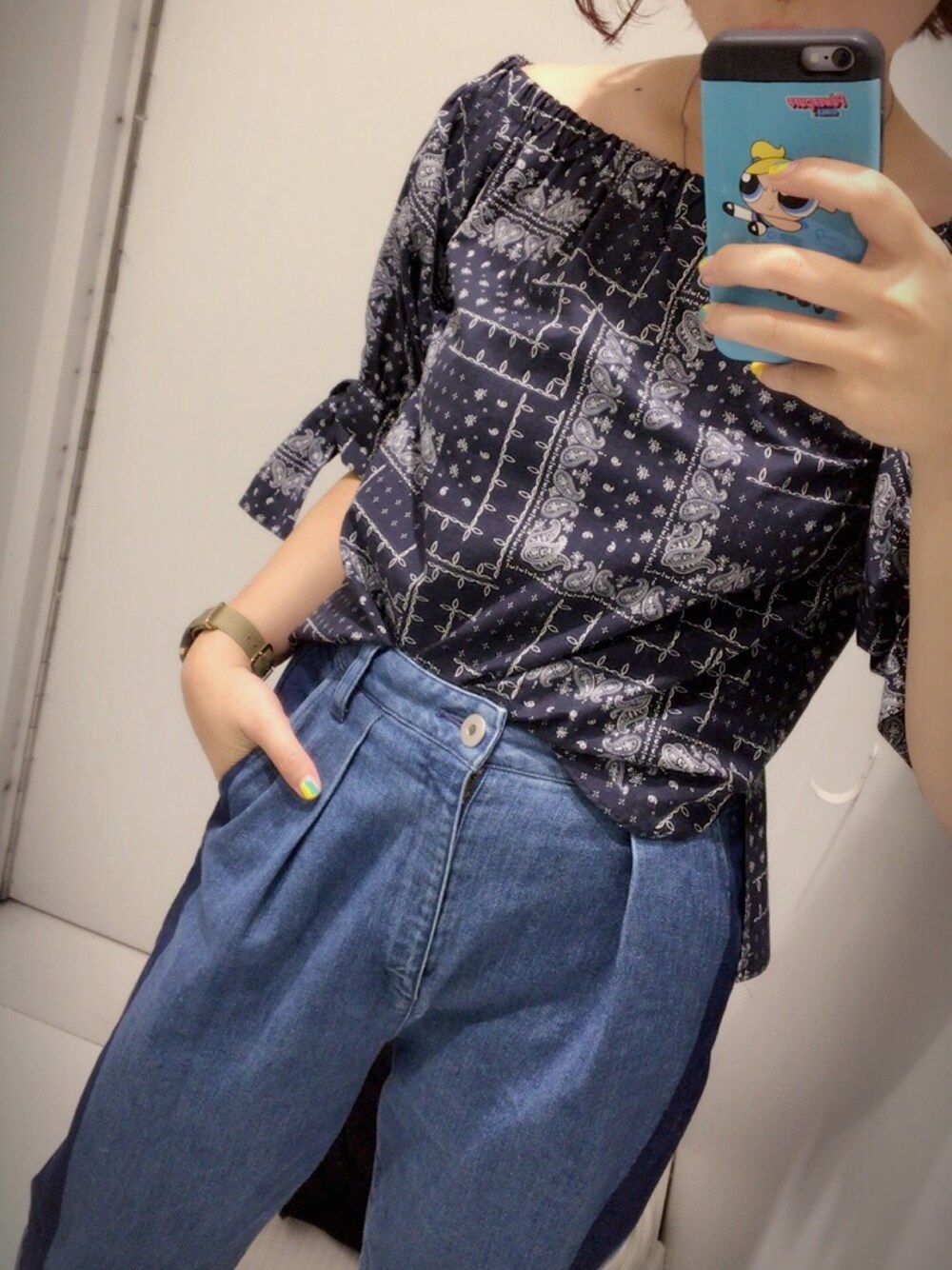 珍しくオフショルTOPS👗 今季はデニムの種類が多くてとてつもなく迷います! ママは外に出ることが多いので日焼け対策マストですね。 今年は人生で初めてってくらい日焼け止めをしっかり塗っています。笑