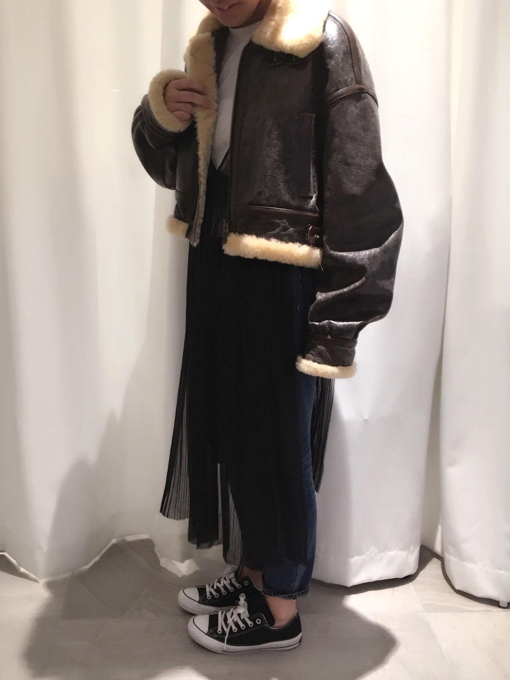テラダアイリのブルゾン「アンティークレザービッグブルゾン」を使ったコーディネート