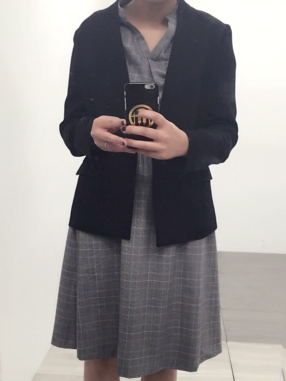 ベーシックに使いやすいワンピース! 丈感もちょうど膝が隠れて、オフィスで大活躍間違いなし!