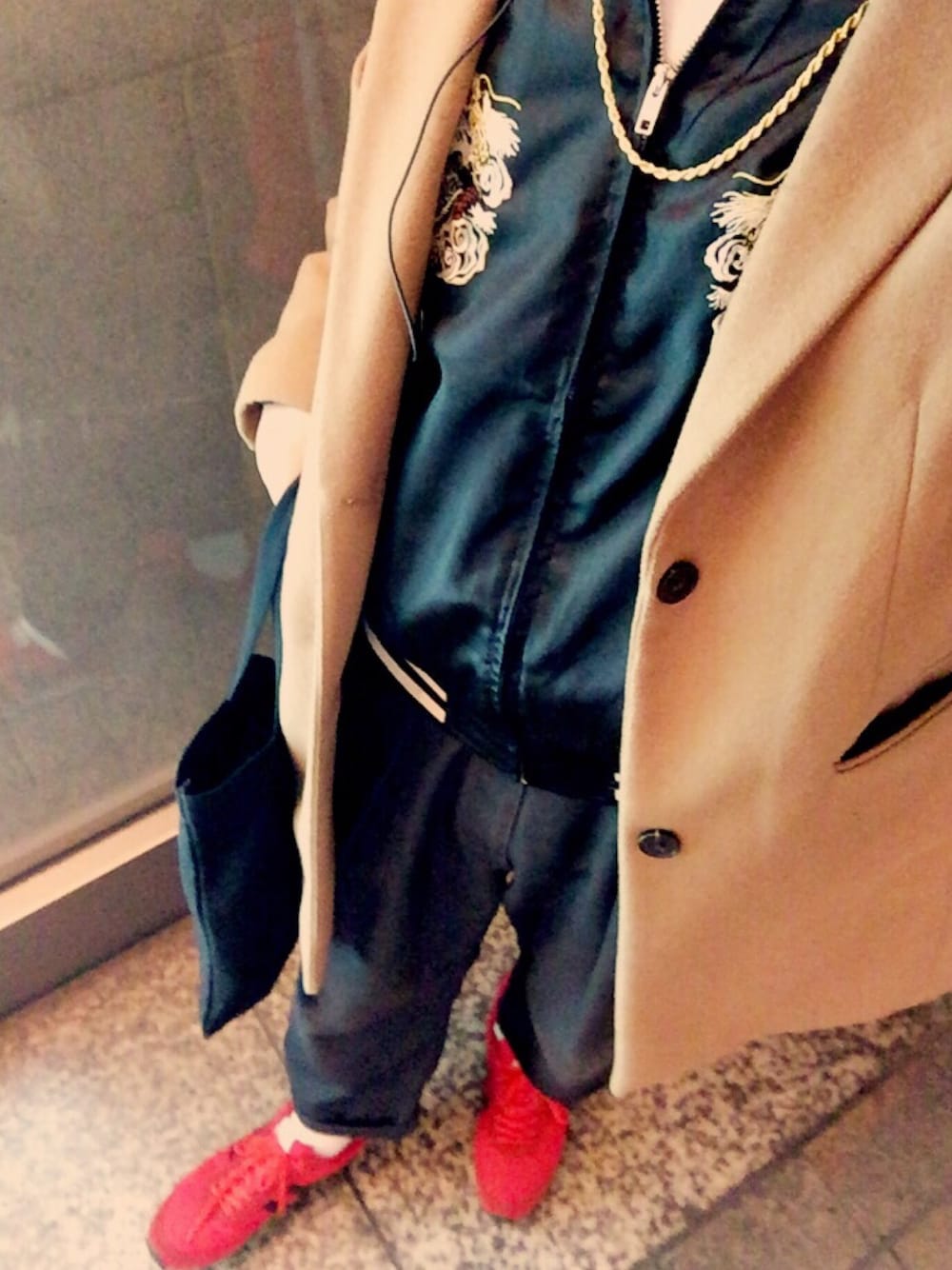 今日モードオフで出会ったスカジャンに一目惚れ…😺 おでかけの途中にお着替えしちゃいました。。。🙀✨笑
