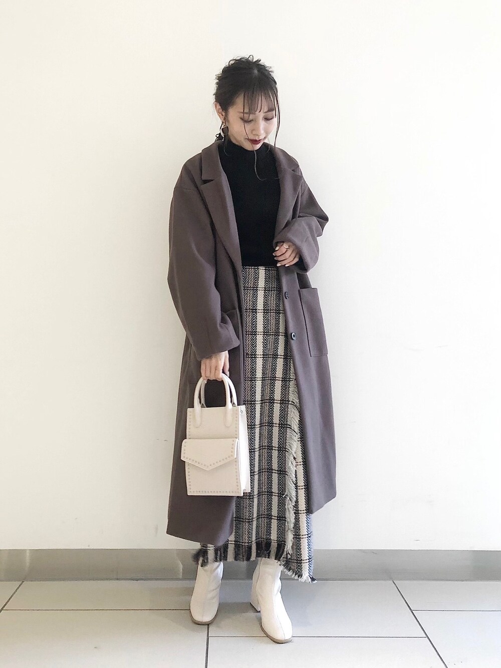 asakaのニット/セーター「リブハイネックニットロングスリーブ」を使ったコーディネート
