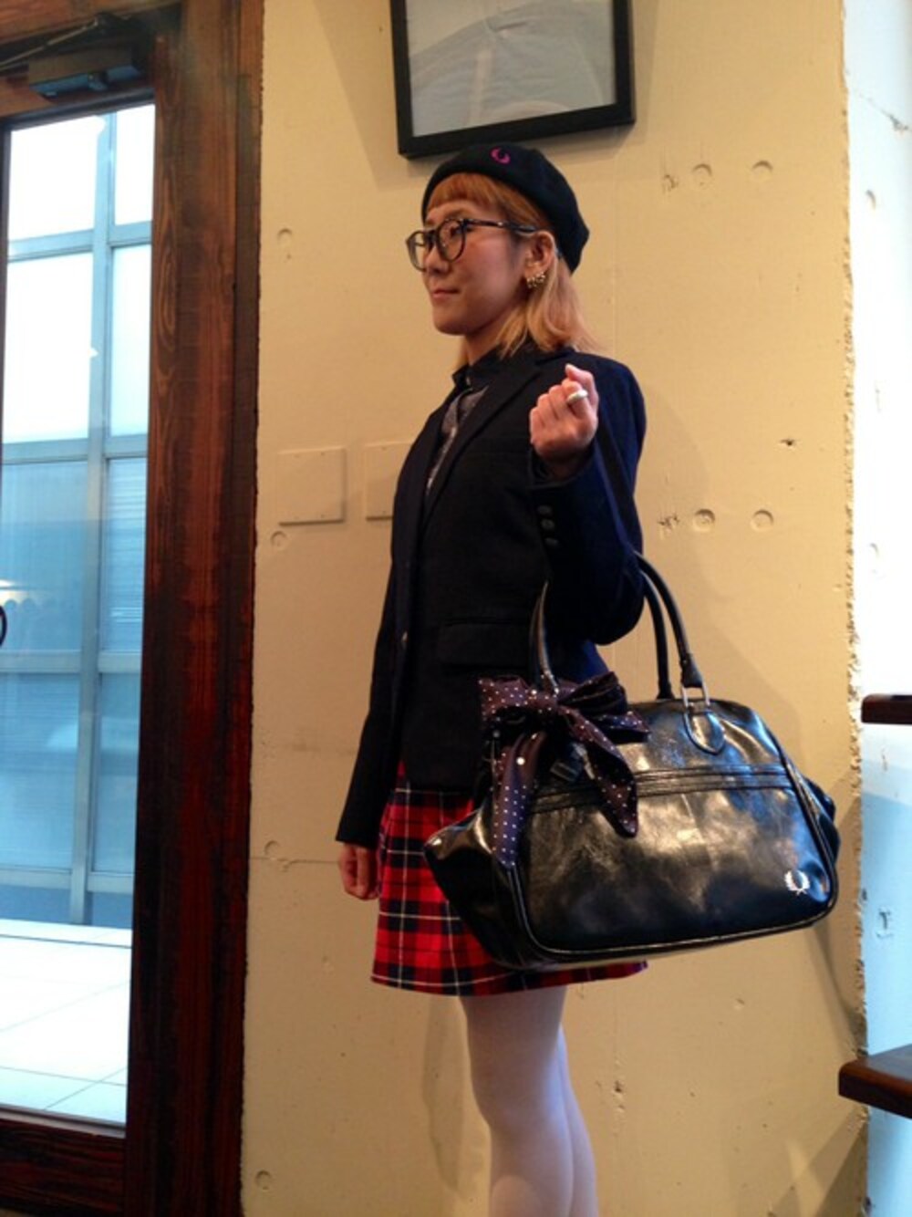 ジャケットが主役のトラッドコーディネート。 どんな方でも合わせやすいネイビーのジャケットはタータンチェックのスカートを 合わせるとグッと今年っぽくなります。