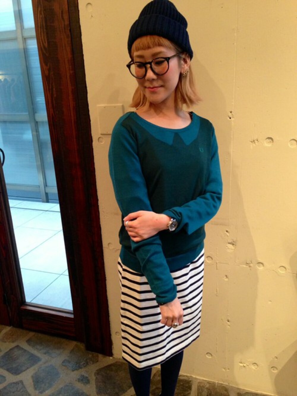 MIYO(FRED PERRY 新宿マルイ本館)のニット/セーター「Fake Collar Crew Neck Knit」を使ったコーディネート