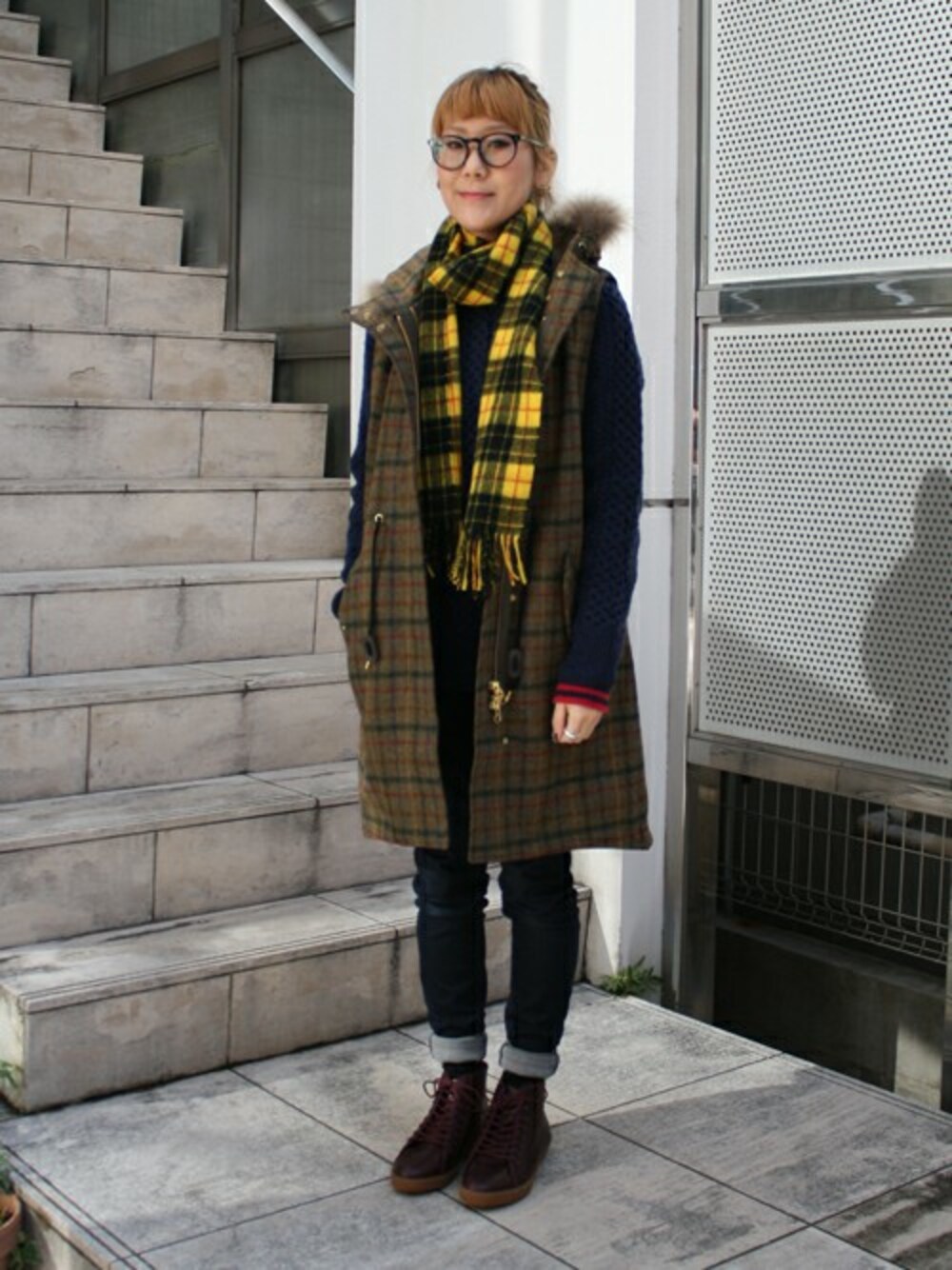 MIYOのマフラー「Woven Tartan Scarf」を使ったコーディネート