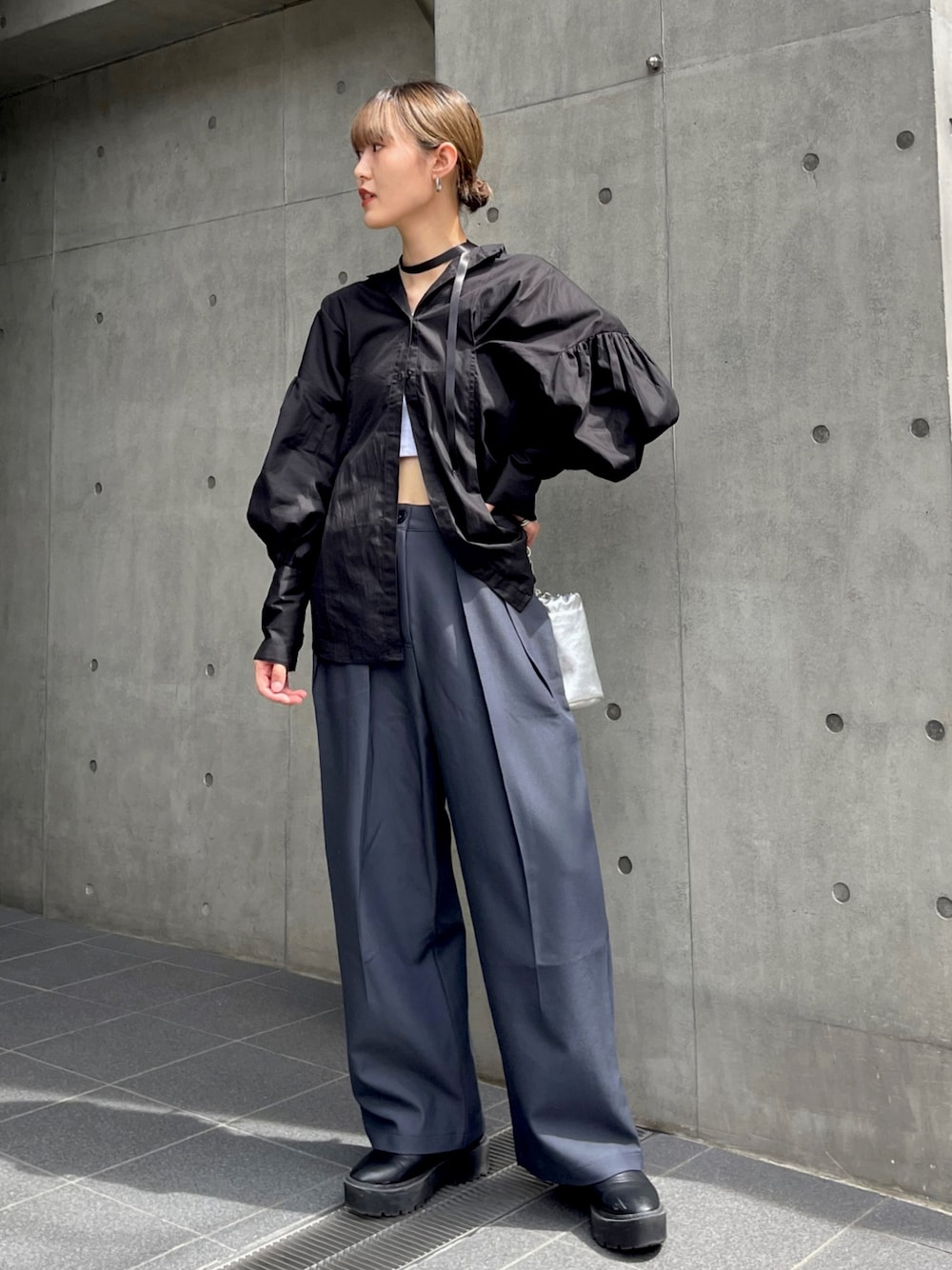 サヨのスラックス「<Sサイズ展開あり>《HiNT/ヒント》2タックワイドスラックス」を使ったコーディネート