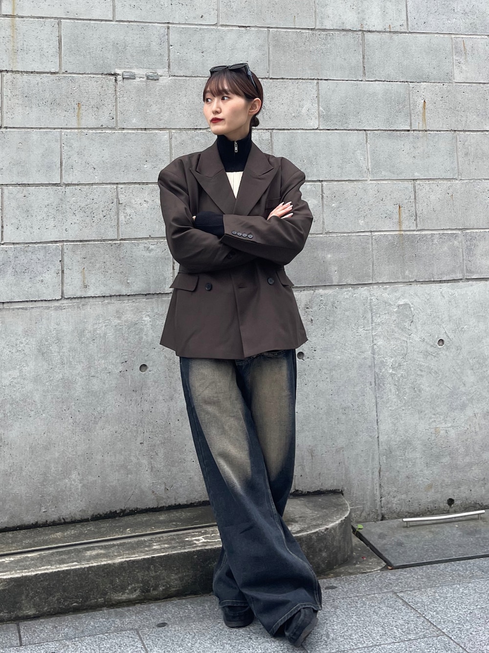トレンドのジャケットー! 肩パッド入ったクールなデザインと、ウエストがキュってなってるところお気に入り! ことしは首元もハイネックで◎
