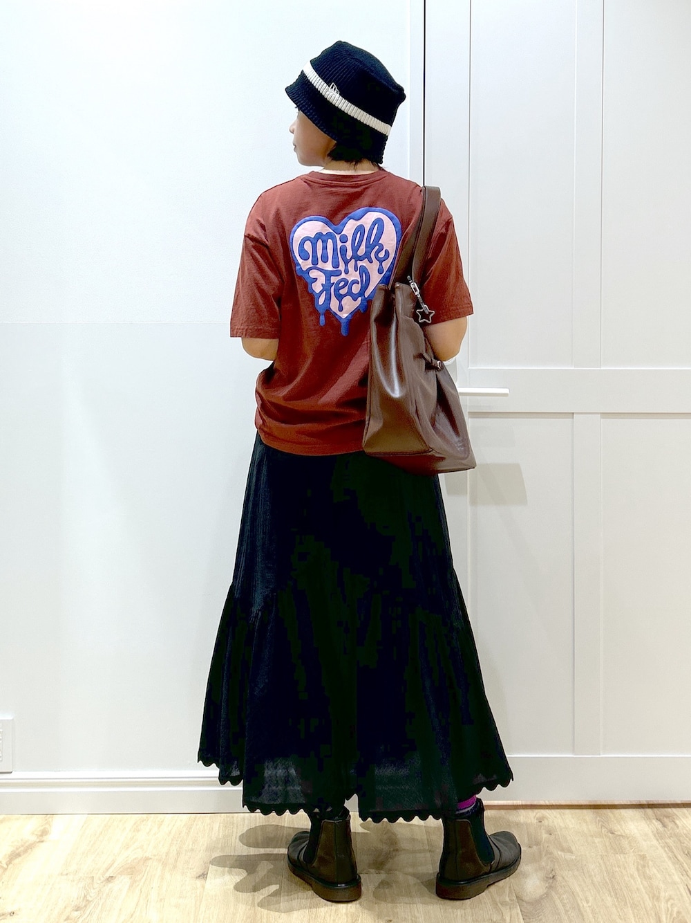 MIKOTO(MILKFED.福岡(ソラリアプラザ))のTシャツ/カットソー「MELTY HEART FOAM PRINT WIDE S/S TEE」を使ったコーディネート