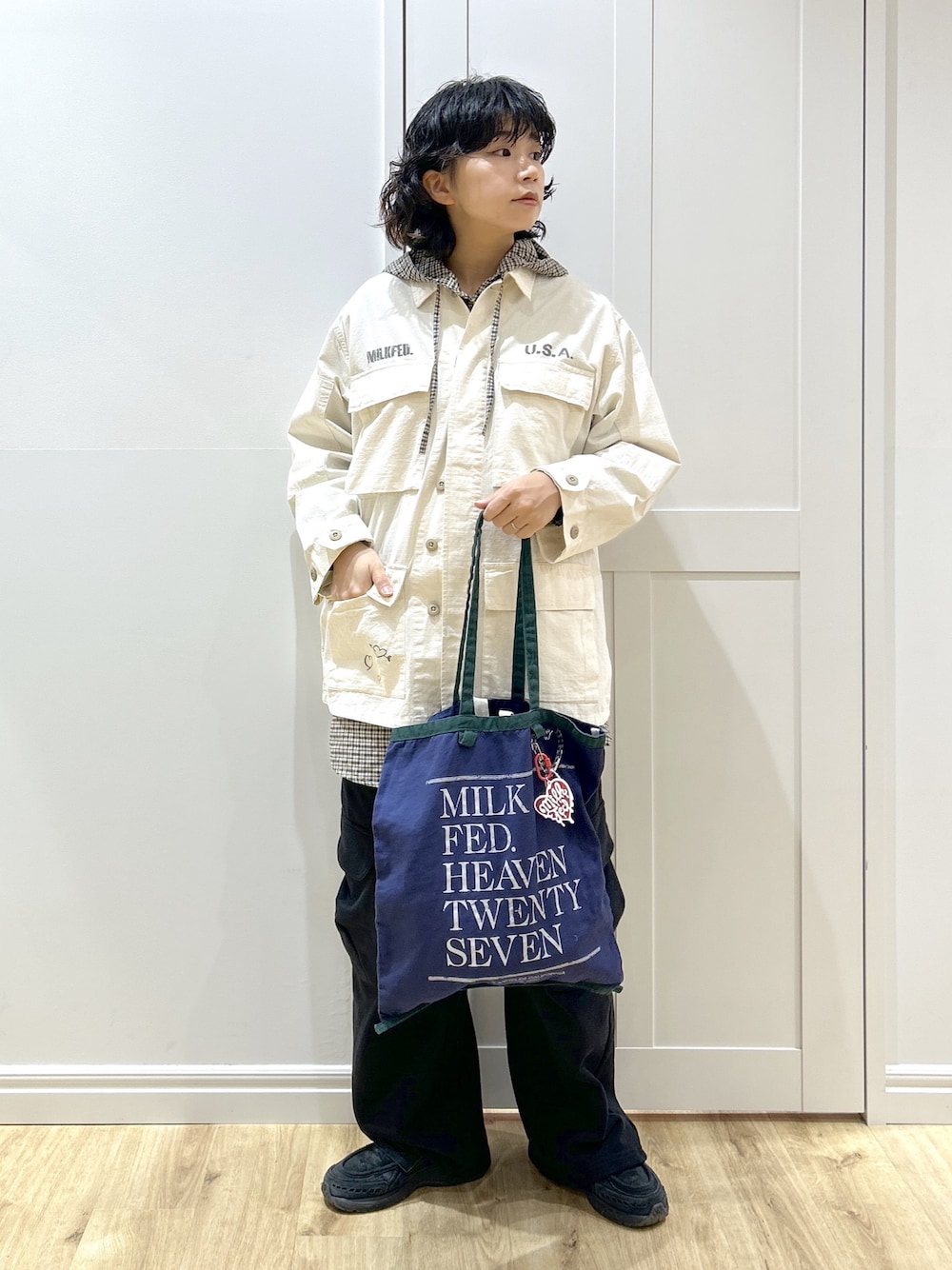 MIKOTO(MILKFED.福岡(ソラリアプラザ))のミリタリージャケット「RIPSTOP MILITARY JACKET」を使ったコーディネート