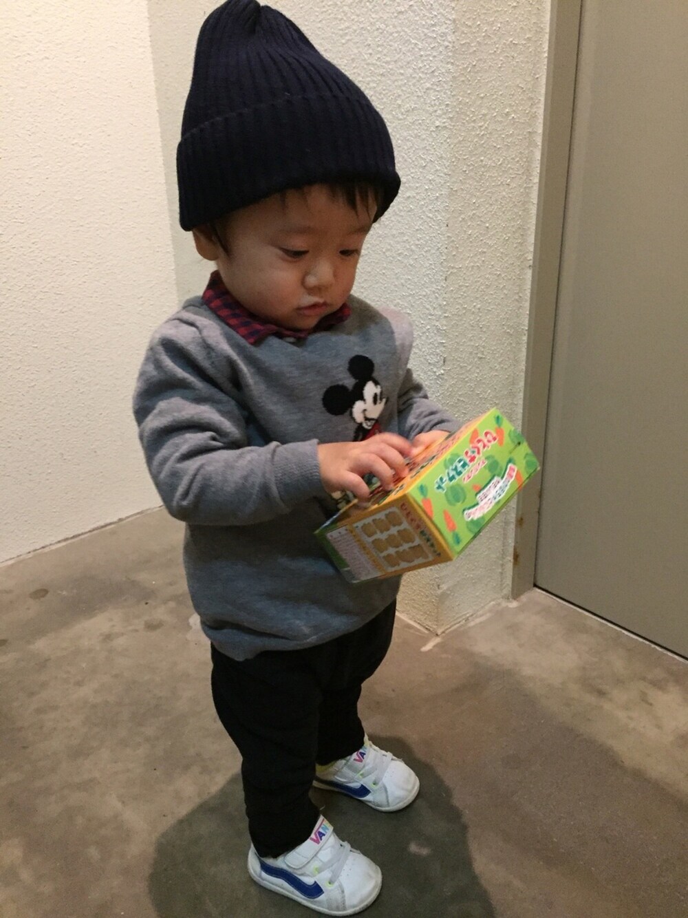 新年のあいさつまわり😊 お土産のアンパンマンビスケットを離さない息子くん😋