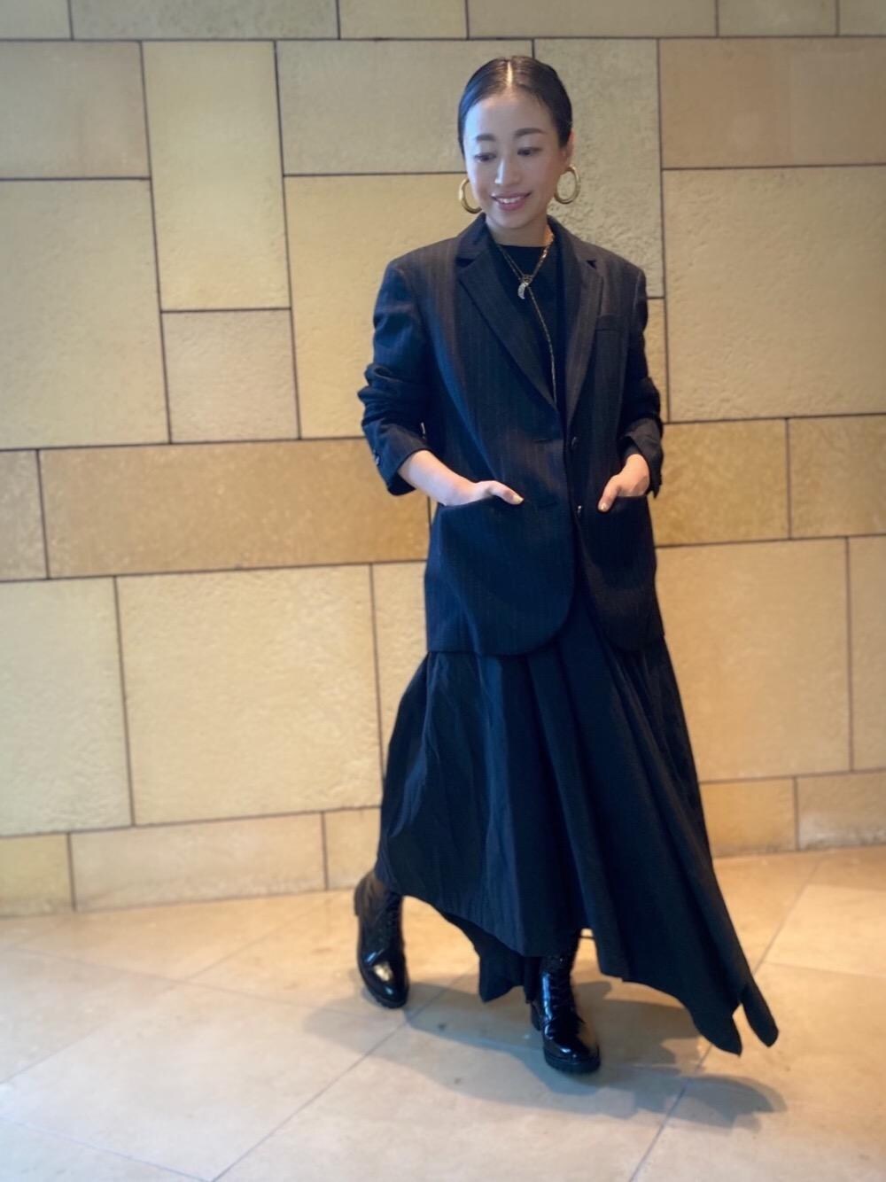 DEGAWAAKIKOのテーラードジャケット「UGCB ストライプ テーラードジャケット」を使ったコーディネート