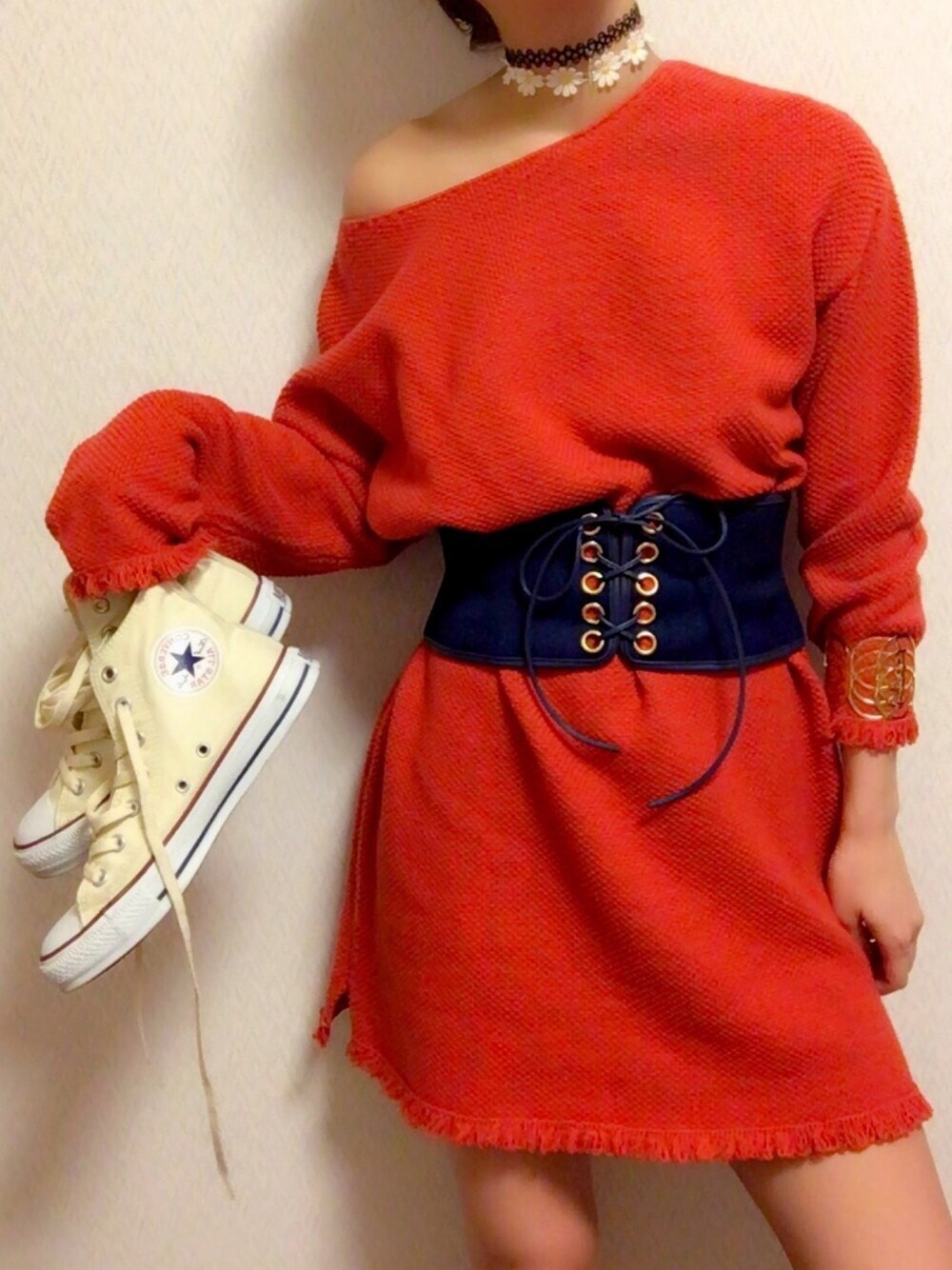 またまた寒いですがもぉ我慢してます😂♡ コンバースのためのコーデです☺️ チョーカー2つ着けてアクセント♡