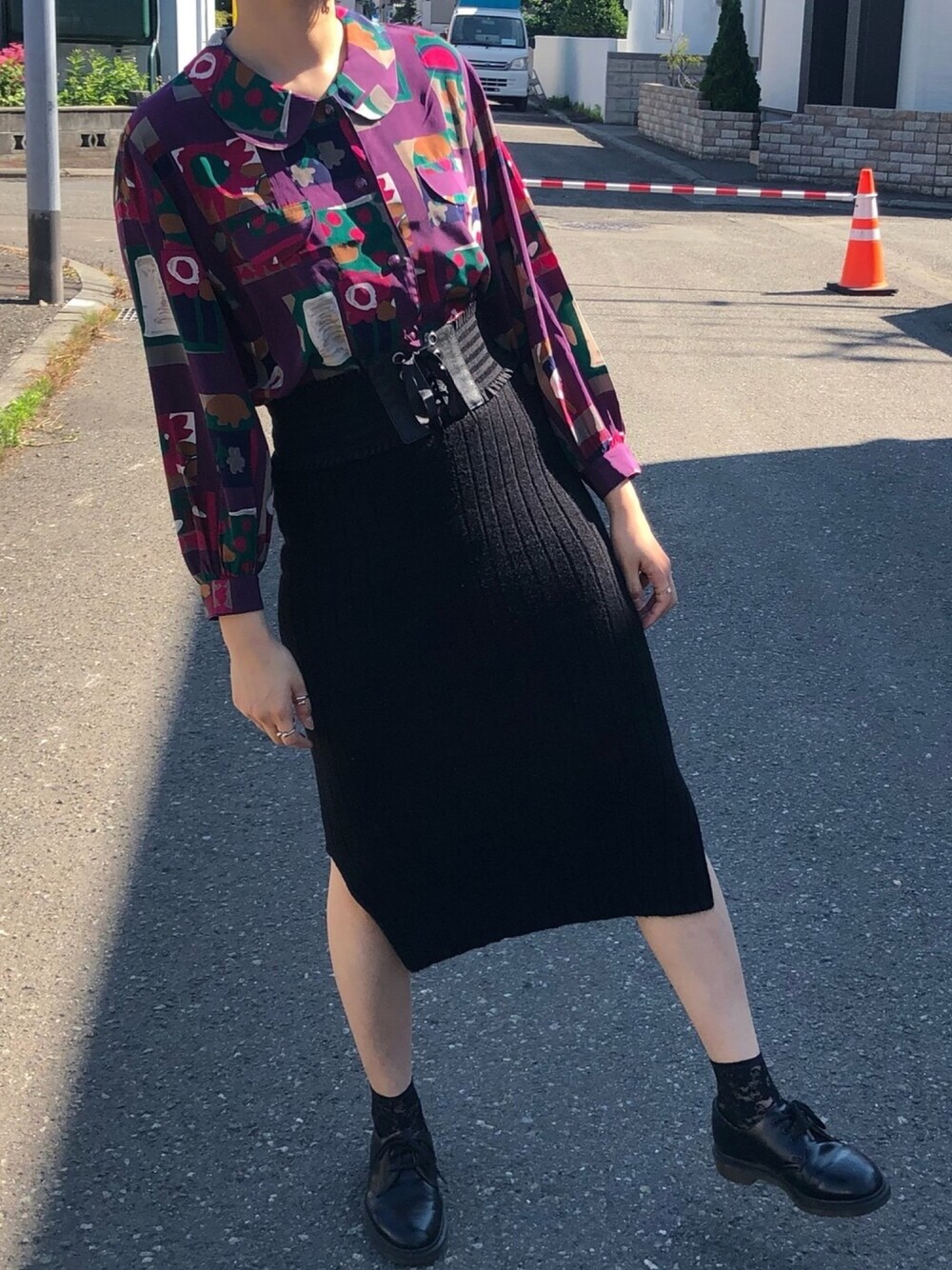 柄シャツだし丸襟だし 紫だしスリット入ってるし 可愛いの集まりじゃない?