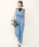 mipaのサロペット/オーバーオール「ウエストシャーリングノースリーブサロペット」を使ったコーディネート