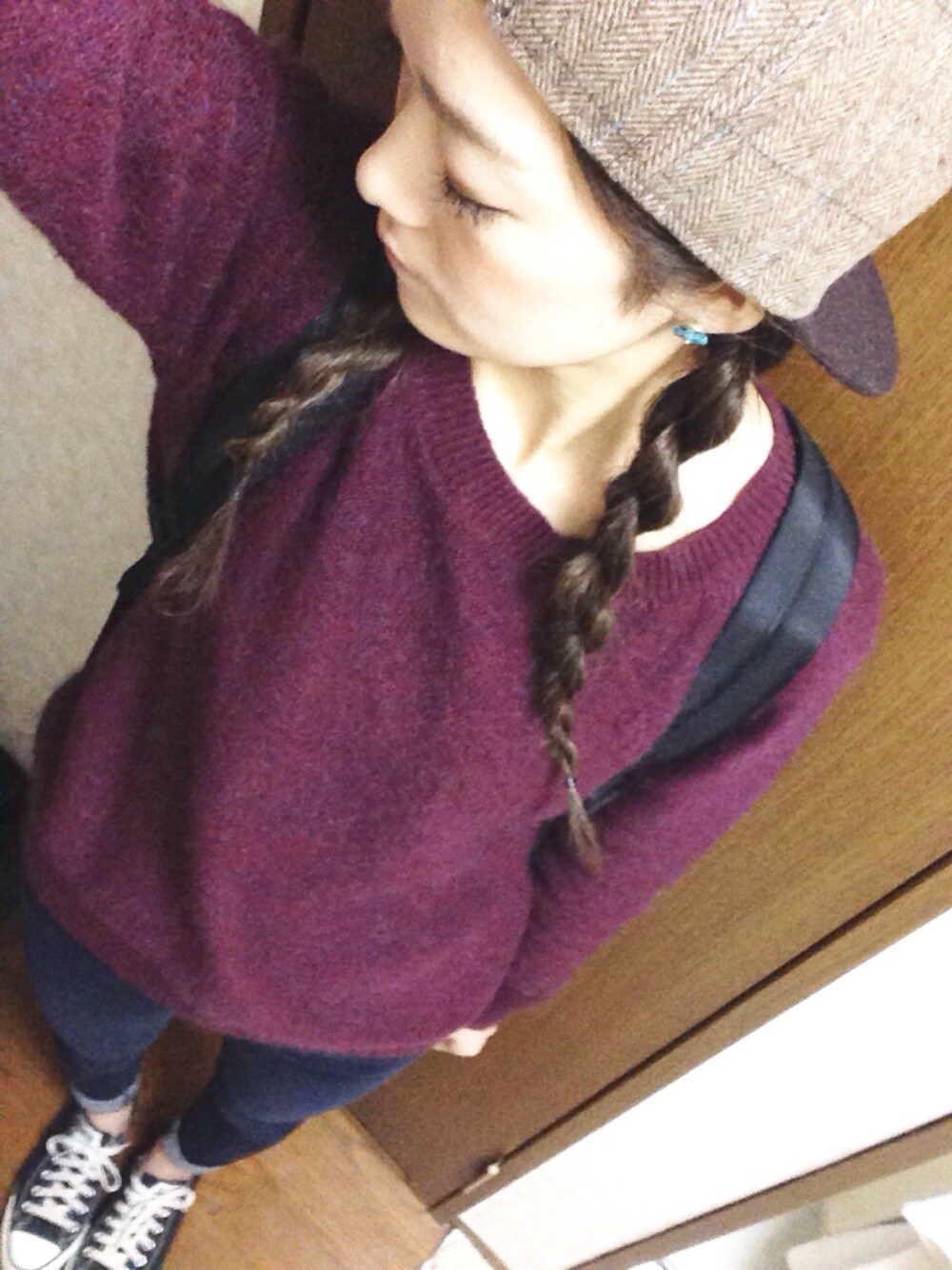 今日はボーイッシュ🎩💕 超 楽ちんスタイル☆ 夜はニットだけだと寒い🌀 ヒートテックさまさま!!!