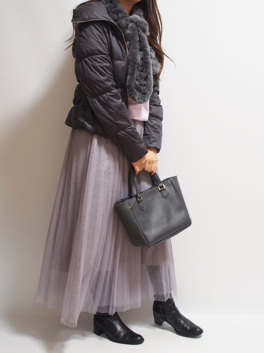 GU 1990円チュールロングスカートの着回しコーデ4/4 チャコールグレーのアウターと小物でぼんやり見えを防止! インナーには明るいラベンダーカラーのニットを忍ばせて、ダウンを脱いだ時の印象の違いを楽しみましょう。 ■こちらのコーデはmichillコラムで掲載しています。 売り切れの予感しかしない…♡GU新作プリーツスカートで高見え&女子力アップコーデ4選 https://michill.jp/author/column/39373 ■アイテム チュールプリーツロングスカートQ:GU(ジーユー) ニット:MERCURYDUO(マーキュリーデュオ) ショートダウン:LAUTREAMONT(ロートレアモン) ファーマフラー:ノーブランド ロングブーツ:PRIMADIVA(プリマディーバ) 雑誌付録バッグ:otona MUSE 2016年12月号 ADAM ET ROPE'(アダムエロペ) ▼▼C CHANNEL(シーチャンネル)公式クリッパー▼▼ セルフネイル&プチプラコーデのHow to動画 https://www.cchan.tv/clipper/1961908/ ▼▼インスタグラム▼▼ ・プチプラコーデ https://www.instagram.com/300yen_code/ ・プチプラネイル https://www.instagram.com/300yen_nail/ ▼▼ネイルブログ▼▼ http://putipura.site/ GU ジーユー ロングスカート チュール スカート ニット ファー ティペット ダウン ショートダウン グレー 大人可愛い 休日 大人カジュアル プチプラコーデ トレンド カジュアル 着まわし 着回し 付録バッグ 雑誌付録 付録 秋 秋服 冬 冬服 冬コーデ 2020年 1月 yuyu 159cm