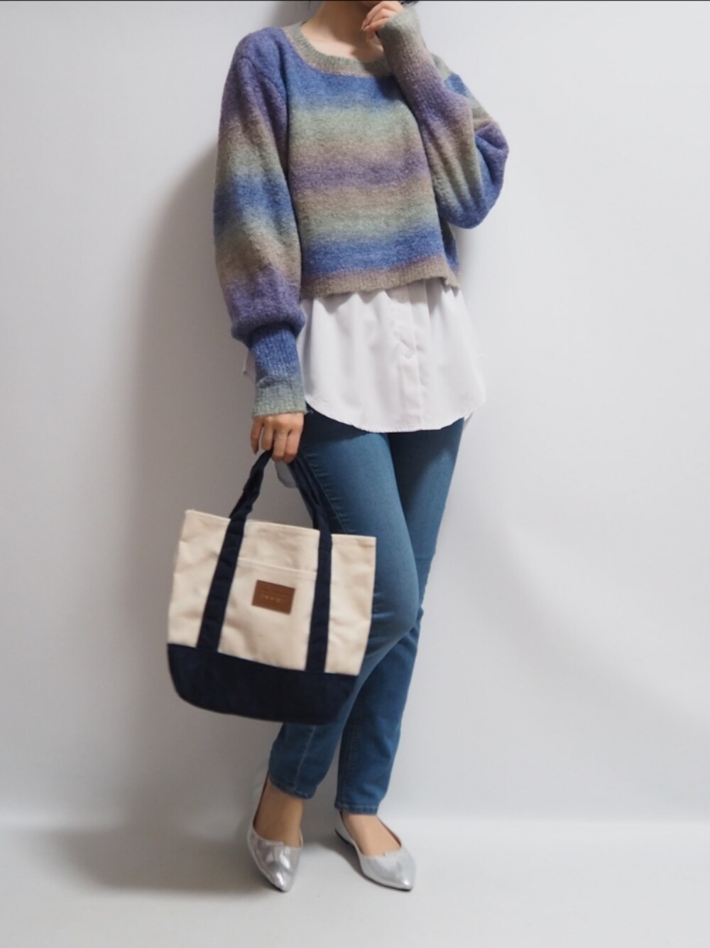 ニットSHEIN フラットシューズ、フェイクシャツtemu パンツローリーズファーム
