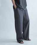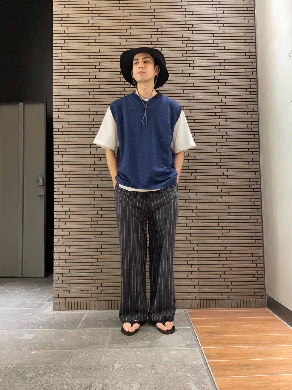 発色のいい夏のニットベスト 個人的にはtシャツとのレイヤードが リラックスしていておすすめです◎ ピンストライプのリネンパンツ ゆらっとした落ち感のあるシルエット 丈も長めでサンダルとの相性も🙆♂️ 最近進撃の巨人を見始めました スタイリングの写真を見返してなんか既視感が