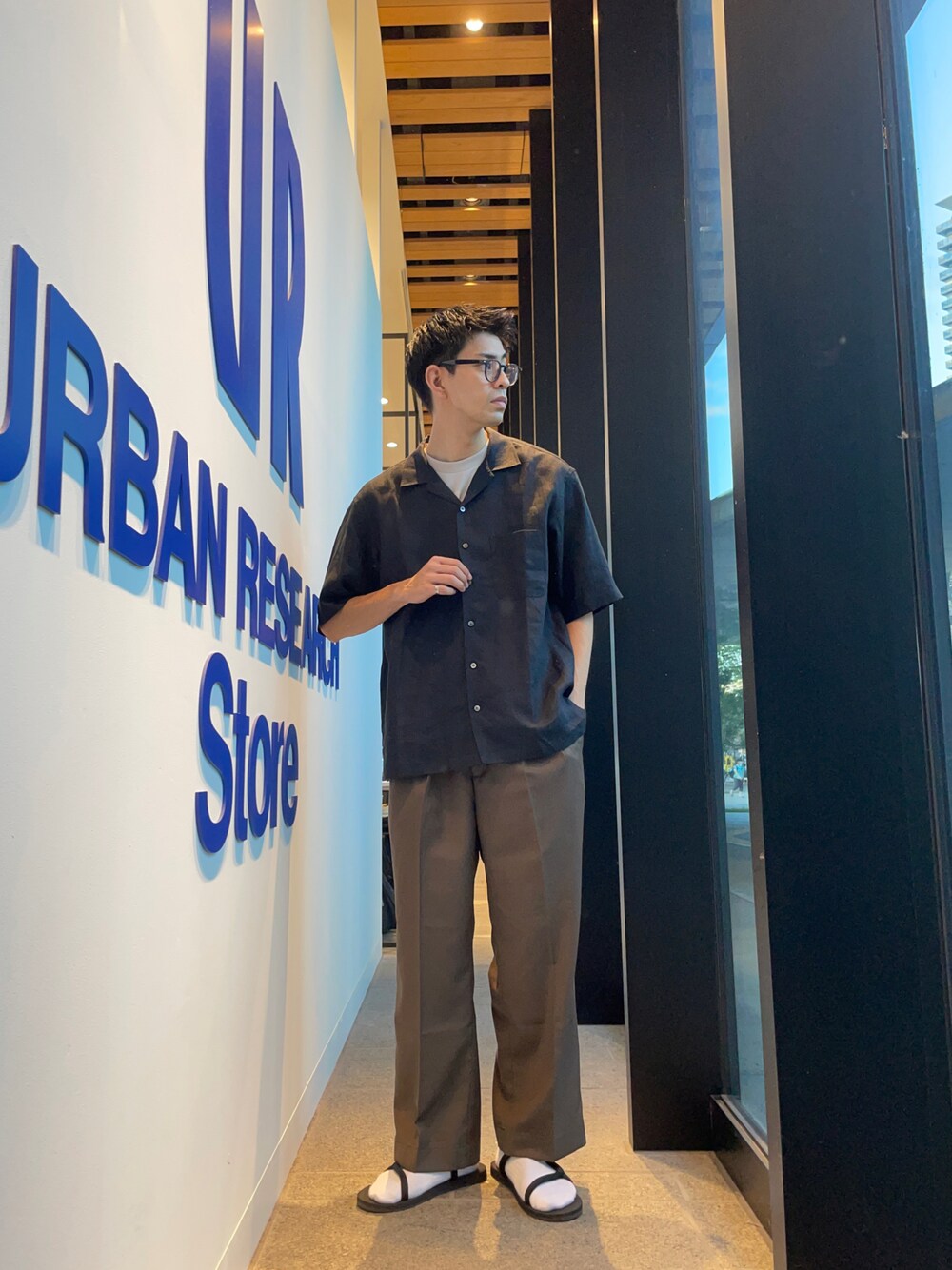 お久しぶりです。 リネンのオープンカラーシャツ 足元サンダルですが もうお店には秋物商品が入ってきています。 更新しなさすぎです。 背景も変わっています。 ちなみにシャツはオンラインでも人気でシンプルながら品のいい素材感でおすすめです。
