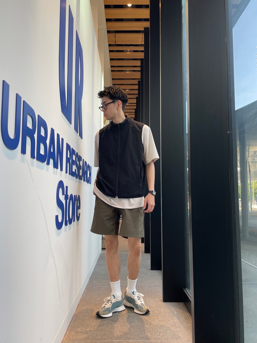 ショーツスタイルどーーーーん アクティブシティボーイスタイル 夏場に欲しかった薄手のベスト Tシャツスタイルが多くなる季節なのでもってこいなプラスワンアイテム◎ 太めのボトムにサンダルも良さそう👀