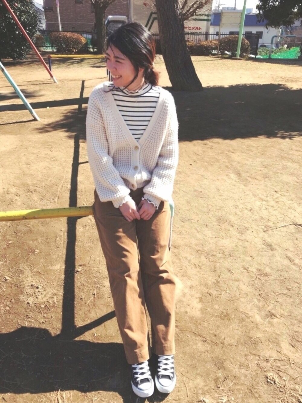 コーデュロイとボーダーカットソーの組み合わせがお気に入りです。 平昌オリンピック、頑張れ日本! 🇯🇵 そしてハッピーバレンタイン☆彡