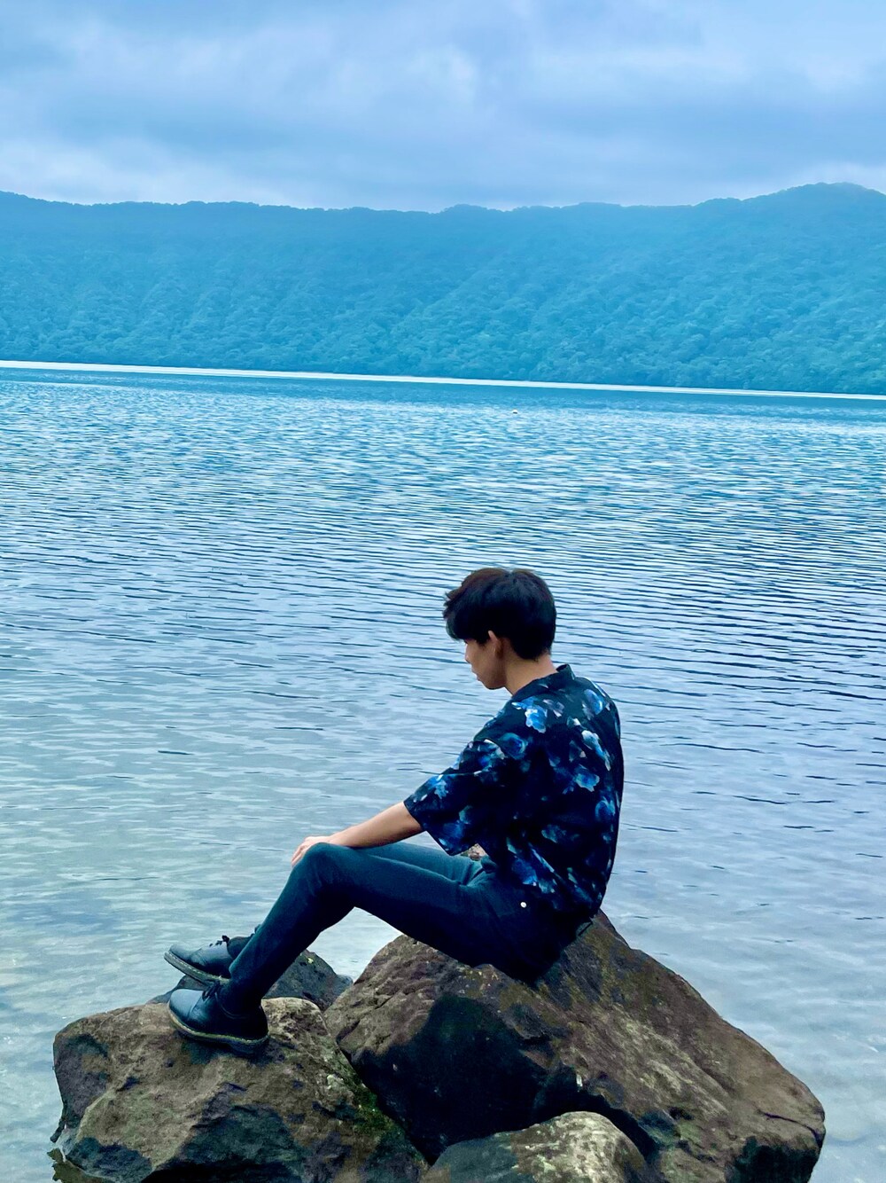 スキニーブラックコーデ 湖に浮かぶ岩🪨